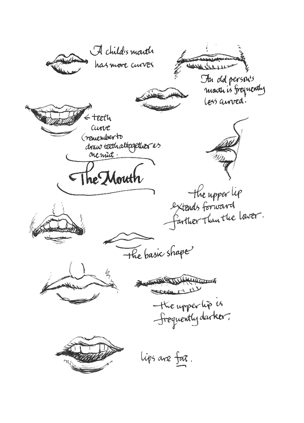 Practice: Find pictures of at least 5 different shaped mouths. Draw them. Then add detail to the mouth of the face you have been working on.
