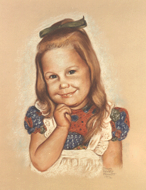 The pastel is life-size and was a commissioned work. Pay close attention to how the shading on the face was done. Also notice how the darkest shading was used to frame the face and add to the realism. This is a good example of sharp focus and soft focus (where the hair blends into the background). Again, the detail was carefully controlled so that your eye would focus on the face. |
