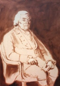![]() Stage 4: After numerous layers of glazes, the rich dark colors are created and the portrait is finished. The light-dark contrast called "chiaroscuro" enhances the depth. Once the paint is thoroughly dry (usually a week later), it is given a coat of damar varnish for protection. The style of this portrait is appropriate for the subject. |